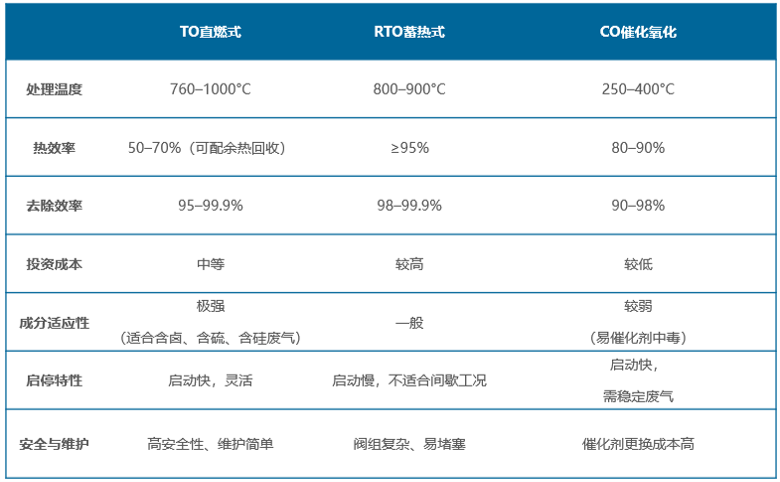 当前VOCs治理技术体系多样,包括吸附、冷凝、吸收、等离子等多种方式,但在精细化工及高端制造领域,以直燃式热氧化(TO)、蓄热式热氧化(RTO)和催化氧化(CO)为主流选择。三者在适用性、经济性与安全性上差异显著: